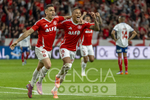 PORTO ALEGRE(RS), 08/11/2025 - FUTEBOL / INTERNACIONAL x BAHIA - Jogadores do Internacional comemoram o gol de Vitinho na partida entre Internacional e Bahia, confronto valido pela 33ª rodada do Campeonato Brasileiro, realizada no Estadio Beira Rio, neste Sabado (08). (Foto: JORGE LANSARIN/Agencia Enquadrar/Agencia O Globo) Esportes