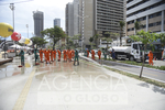 Fortaleza, (CE) 31/12/2025 - Limpeza na Praia de Iracema - Vista de trabalhadores da prefeitura realizando limpeza na Orla da Praia de Iracema nesta quarta-feira, para poder receber os turistas para a festa da virada que ira ocorrer na noite desta quarta-feira (31) para quinta-feira (1). (Foto: Caio Rocha/Ofotográfico/Agência O Globo) Especiais