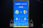 Barueri (SP), 08/01/2026 - Palmeiras x Batalhão - Placar da partida ( 9 x 0 para o Palmeiras) entre Palmeiras x Batalhão FC, válida pela segunda rodada do Grupo 27, da Copa São Paulo de Futebol Júnior 2026, nesta quinta feira (8), na Arena Crefisa Barueri, em Barueri, SP. (Foto: Roberto Casimiro/Fotoarena/Agência O Globo) Esportes