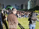São Paulo (SP), 25/01/2026 - CINEMA/OSCAR/CCSP - Sessão ao ar livre do filme O Agente Secreto com Wagner Moura no terraço do Centro Cultural São Paulo (CCSP) e do curta Amarelinho na noite desta domingo, aniversário da cidade de São Paulo. Durante a sessão uma chuva rápida assustou o público. (Foto: Leandro Chemalle/Thenews2/Agência O Globo) SP