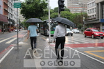 São Paulo (SP), 14/01/2026 - Clima tempo em São Paulo - São Paulo tem alerta de chuva forte. Centro de Gerenciamento de Emergências emitiu dois avisos para alagamentos. A chuva chega ao Centro de São Paulo na tarde desta quarta, (14). Na imagens, a população de guarda chuva. (Foto: Angélica Alves/Fotoarena/Agência O Globo) São Paulo