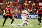 Recife (PE), 31/01/2026 - Sport X Santa Cruz - Atacante Quirino (Santa Cruz - centro) e zagueiro Marcelo Ajul (Sport - direita) durante o jogo entre Sport X Santa Cruz, válido pela sétima rodada da primeira fase do Campeonato Pernambucano de Futebol 2026, disputado no Estádio Adelmar da Costa Carvalho, conhecido como Estádio da Ilha do Retiro, em Recife (PE), Brasil, neste sábado (31). (Foto: Ricardo Fernandes/Spia Photo/Fotoarena/Agência O Globo) Esportes