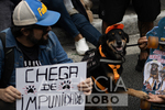 São Paulo (SP), 01/02/2026 - Ato em defesa do caso Orelha em São Paulo - A morte do cão Orelha mobiliza manifestações em diversas capitais brasileiras neste domingo, (1). Manifestante com cartaz ''chega de impunidade'' e ao lado dele uma cadela fantasida de skatista que durate a manifestação foi usada para representar o Orelha. Em São Paulo, o protesto acontece à s 10h, no vão do MASP, na Avenida Paulista. (Foto: HeitorVMGL/Fotoarena/Agência O Globo) Política